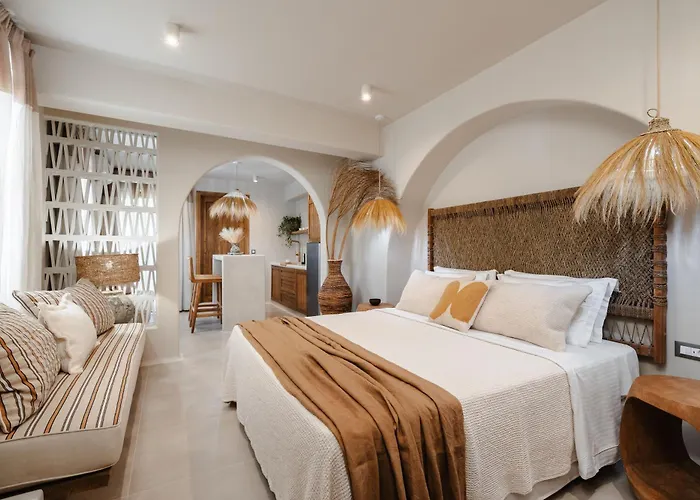 The 45 m² Chic Elysium - Nirvana Naxos City apartment is located a mere 0.6 km from the Kouroi of Naxos and merely 12 minutes' walk from the Temple of Apollo. Staying in the apartment, nestled right near the Archaeological Museum of Naxos, guests can relax on a terrace.